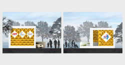 The project attempts to design multi-facility toilets along the Eastern Express Highway under Swachch Bharat Abhiyaan. In order to facilitate long distance travellers, the project is designed as a refreshing facility with amenities such as an ATM machine, free WIFI, Shower facility, Changing rooms, mobile charging station, Changing station for mothers with infants and a Sanitary napkin dispenser .The rectangular block is sculpted to form an inviting entrance porch, where one could wait under shade. The Landscape wraps the edge of the toilet. Within the toilet, easy accessibility is enabled for the handicapped visitors. The architecture of the toilets consists of a porous three-dimensional skin that enable ample amount of light and ventilation to the toilets. The blocks following the movement of sun will create various patterns of light and shadows within the inside. The skin is made up of triangular pre-fabricated modules that can be easily mass produced and put together through dry construction. The pre-fabricated modules depending on its height in elevation, create varying shades of privacy. The prefabricated skin also creates a landmark that will be easily visible to highway travellers during day and night.